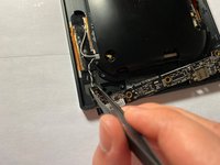 Disconnect the ribbon cable on the board using a pair of reverse tweezers.