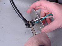 Grab the handle wire's strain relief clip and carefully remove the wires and strain relief plate.
