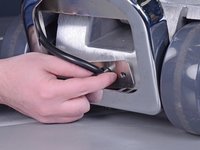 Use a 3/16" hex key or driver bit to remove the four 18.6 mm-long screws securing the shield brush to the bottom of the floor buffer.
