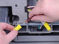 Untwist and remove the yellow wire nuts from the black, brown, and red wires.