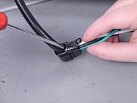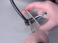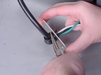 Use a flathead screwdriver to pry open the strain relief clip and remove it.