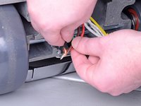 Remove the 12.4 mm-long Phillips #2 screw securing the ground wire to the floor buffer.