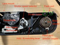 Note that the camera was jammed when I took the picture. Normally the shutter curtain should be closed at this stage