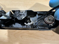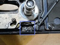 Pay special attention to how the S-shaped spring is arranged (blue circle and rectangle). It is crucial for absorbing the shock from the motor winder.