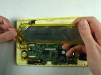 Gently remove tape from the side of the battery connecting to wires and circuits.