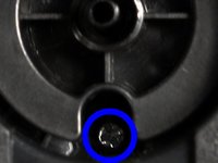 Uninstall the larger screw that sits deeper in the wheel compartment.