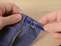 Tuck one end of the ribbon into the pocket, inserting the ribbon past the missing seam.