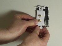 Use an appropriate screwdriver to remove the wall plate mounting screws. This wall plate used flathead screws, but yours could be Phillips.