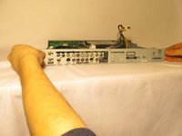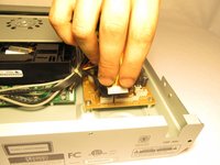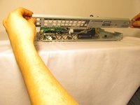 • Remove the four 1cm screws, two on each side, of the DVD player with the Phillips #1 screwdriver.