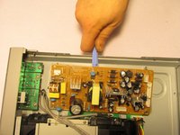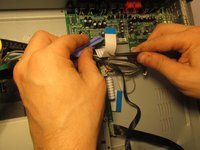 • Place the blue plastic tool opener underneath the side of the circuit board and carefully remove it from the DVD player.