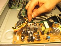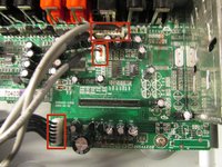 • Remove the three wires with the white pin adapters from the green circuit board that you just disconnected the ribbon wires from.