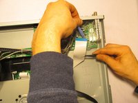 • Using the tweezers and the blue plastic opening tool, disconnect the ribbon cables from the green circuit board where the I/O ports are attach to.