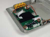 Pinch the plastic adapter with two fingers to remove the wires circled in red from the circuit board.