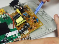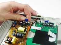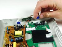 Pull the white cable with the blue adapters off of the circuit boards.