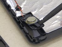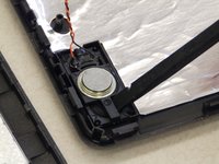 In order to replace the back cover you must remove the speakers. Place the Spudger under the plastic frame of the speaker as shown. Pry up, popping the corners of the speakers out of of their bracket and lift the speaker out.