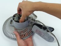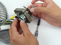 Unscrew the two adjacent housing screws to free the motor cage from the housing.