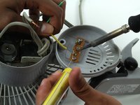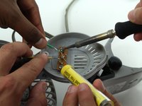 After replacing the switch, resolder the gray power cord, the green wire, and the yellow wire.