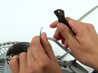 Strip the green and yellow wire about two centimeters from where it was just cut.