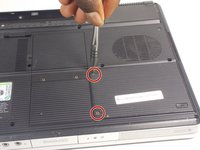 Loosen the two 5mm Philips #1 screws that secure the hard drive cover to the computer.