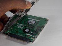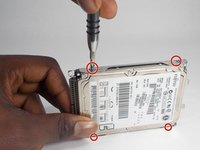 Remove the four 4mm Philips #1 screws, two on each side, that secure the hard drive frame to the hard drive.