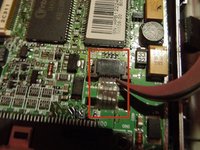 Once the backboard is removed, remove the four screws on the motherboard. Two on top of the motherboard and two on the bottom of the motherboard using the Phillips screwdriver.