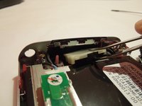Unscrew the two Phillips #00 screws to get the speaker loose using a Phillips screwdriver. The screws measure 0.3 mm in length.