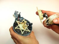 Unscrew the two 18 mm long Phillips #2 screws on the side of the hair dryer.