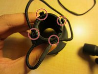 Begin by attaching the bottom cord to the four slots attached to the mic holder.