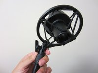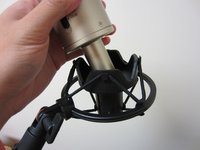 Carefully reattach your condenser microphone to the shock mount to make sure the cords are connected properly.