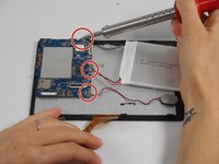 Press the soldering tip to the 3 connection points to detach the motherboard and the battery. See this guide for information and tips on soldering and desoldering.