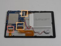 The cables marked in orange are known as zero-insert force cables. To remove the connection, flip up the dark tab and gently pull the ribbon away.