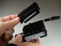 Grab the camera on both sides and slide the outer shell forward until completely removed.