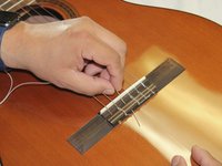 Take your new nylon guitar string and feed one end into the bridge hole.