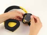 Carefully remove earmuff from headphones by getting a grip under the earmuff cushion and peeling up over the lip that keeps it in place.