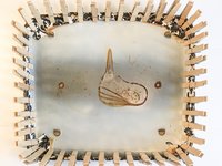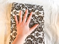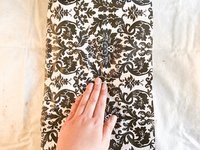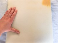 Spray adhesive onto foam and center each metal plate on the cloth so that there is an equal amount of cloth peeking out on all four sides.
