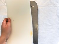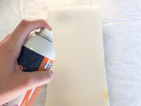 Use the spray adhesive to spray the metal plates and apply the foam to their respective pieces.