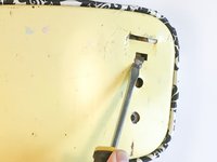 Use a flathead screwdriver to lift up the tabs on the back rest to remove the metal plate.