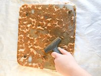 Smooth cloth onto each metal plate, pushing from the center, outwards.