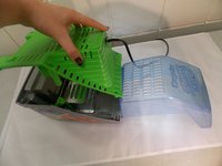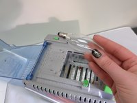 Remove the 2 screws (.75cm in length) currently securing the metal melting tray with a Phillips #2 screwdriver.