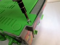 Remove five screws (1.5 cm in length) using a Phillips #00 Precision screwdriver and open the clear plastic box.