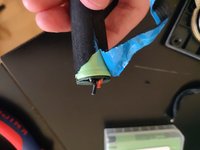 Finally, take the blue cushion-wrapping and somehow try to wrap it around the battery. Then try to attach the battery to the case using the black plastic brace and the two screws.