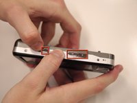Remove the 2 screws (3.5 mm) on the Compact Flash insert, located on the left hand side, with a Phillips #000 screwdriver.