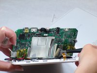 Unplug the ribbon cable near the edge of the motherboard in the bottom right of the device.