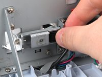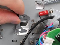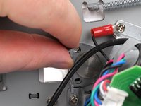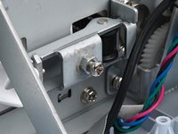 Reconnect the motor ground wire to the right-most screw that secures the right end of the top metal track.