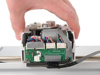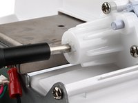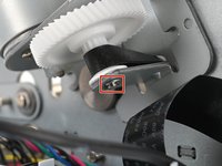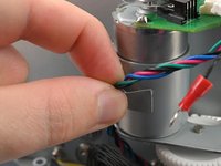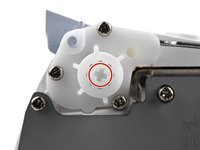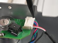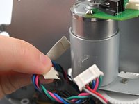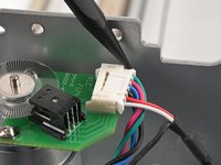 Use a spudger to walk the cable out of the sliding connector on top of the motor on the right side of the Cricut by pushing on one side, then the other, until it's free.