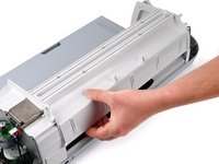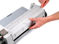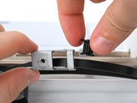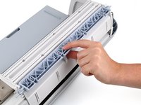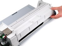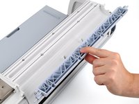 Lift the top metal track and slide it to the right to remove it, along with the large white plastic bracket.