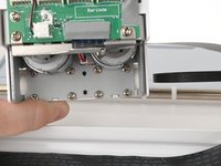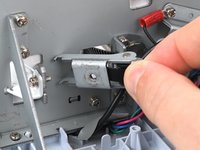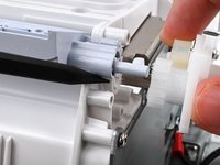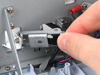 Remove the front end of the tray release arm from the front tray release mechanism by pulling it towards the center of the Cricut, then lifting it up.