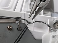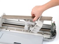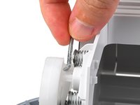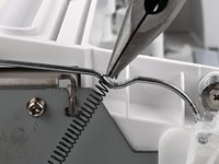 Use a pair of needle nose pliers or your fingers to lift the spring off of the tray release arm on the left end of the Cricut.