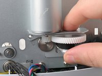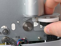 Hold the gear, belt, and cap in place as you place the gear into the motor bracket.