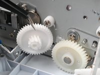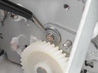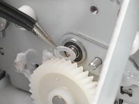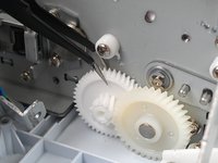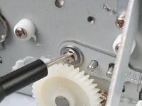 Use a pair of angled tweezers to remove the gear that was secured behind the roller bar motor assembly.